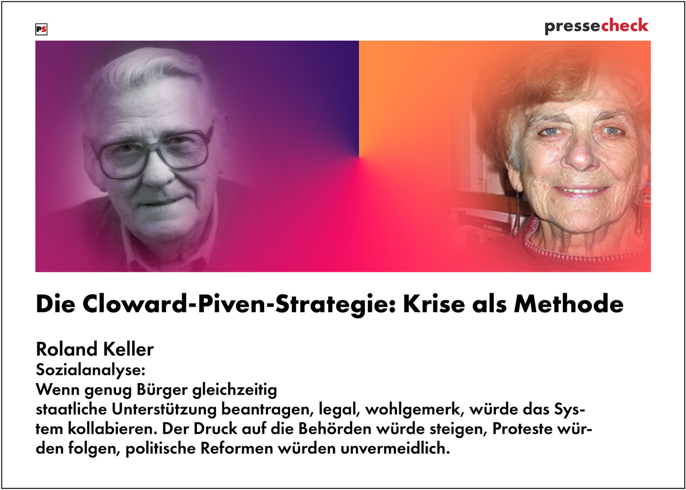 Diese wurde 1966 von den US-Sozialwissenschaftlern Richard Cloward und Frances Fox Piven formuliert. Sie verfolgt das Ziel, durch bewusste Überlastung der sozialen Infrastruktur – etwa durch massenhaften Bezug